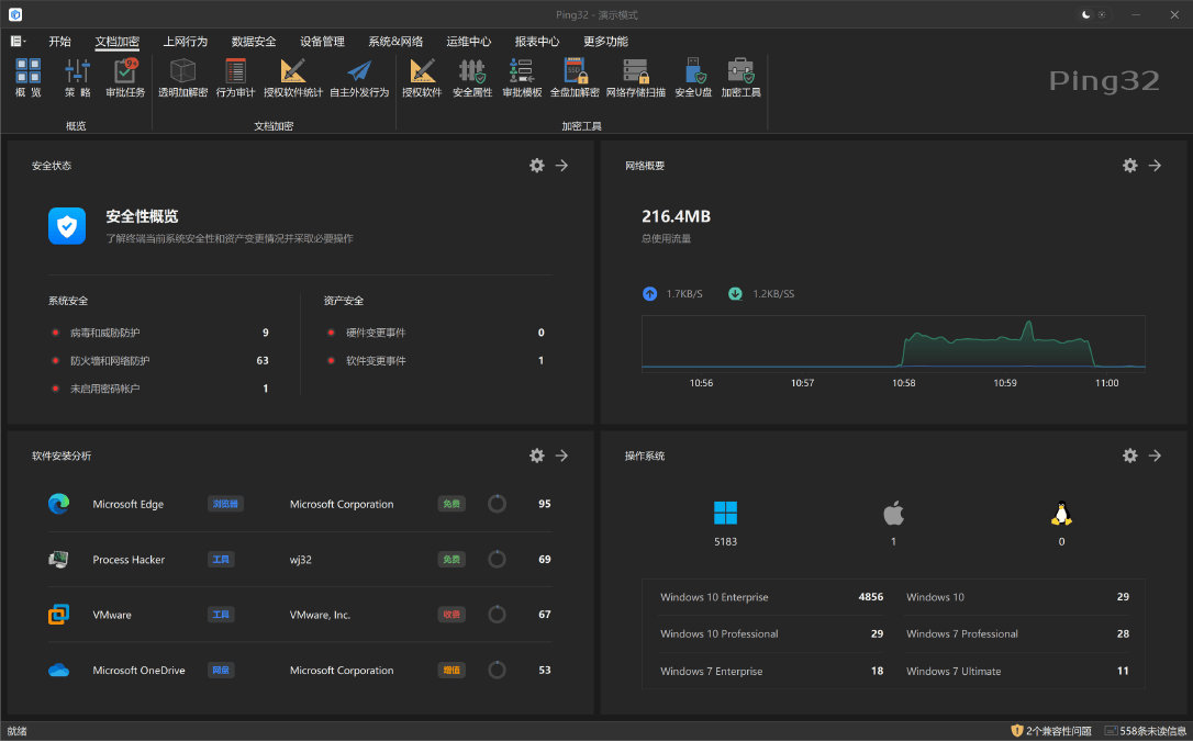 除此之外,Ping32还具备强大的访问控制功能,可以设置权限限制,防止未经授权的人员访问敏感数据。它内置智能加密规则,根据数据的敏感性自动选择最合适的加密方式,极大提升了加密效率与安全性。此外,Ping32还具备实时审计日志功能,能对数据的访问和变动进行全面记录,帮助管理员及时发现并应对潜在的泄露风险。