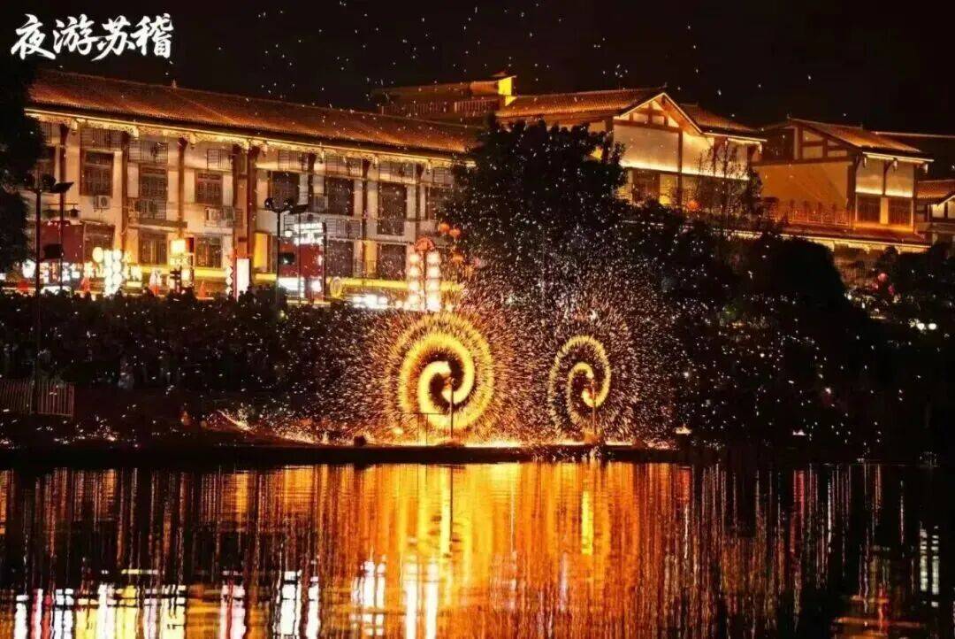不能错过的新春夜游盛会!可以零距离体验和欣赏跷脚牛肉制作技艺、鱼灯、变脸吐火、打铁花等非遗项目。